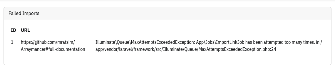 It might be possible that the import of a link fails due to various issues. The reason for the failed import will be shown directly under the queue.